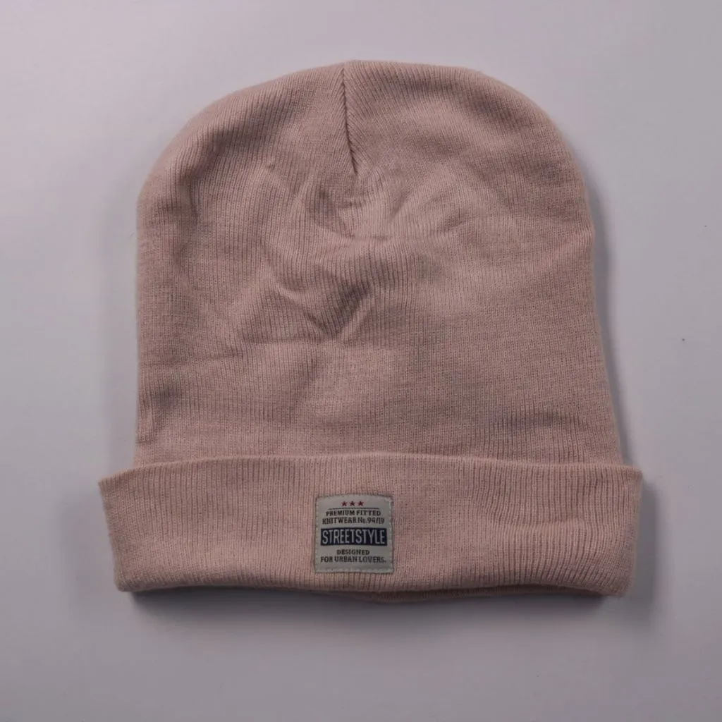Вязаная шапка Accessoires нежно-розового цвета с отворотом и нашивкой в стиле street. Подойдёт для повседневной носки в холодную погоду, на осень и зиму. Практична в уходе и хорошо сохраняет тепло благодаря акриловой пряже.