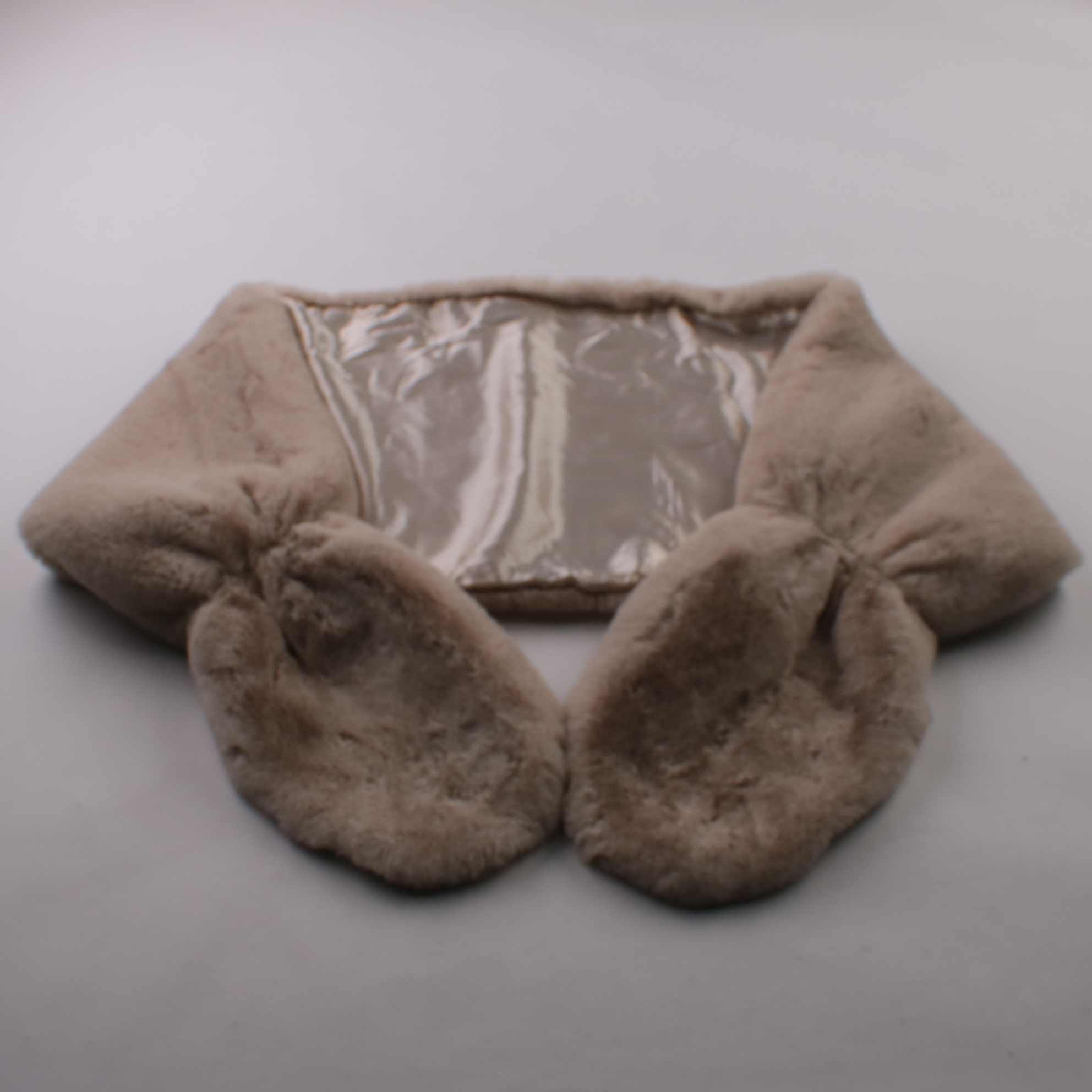 Меховой шарф бежевого оттенка с подкладкой, мягкий и объёмный. Подойдёт для холодной погоды и будет смотреться с пальто или пуховиком. Хорошо закрывает шею и быстро согревает.
