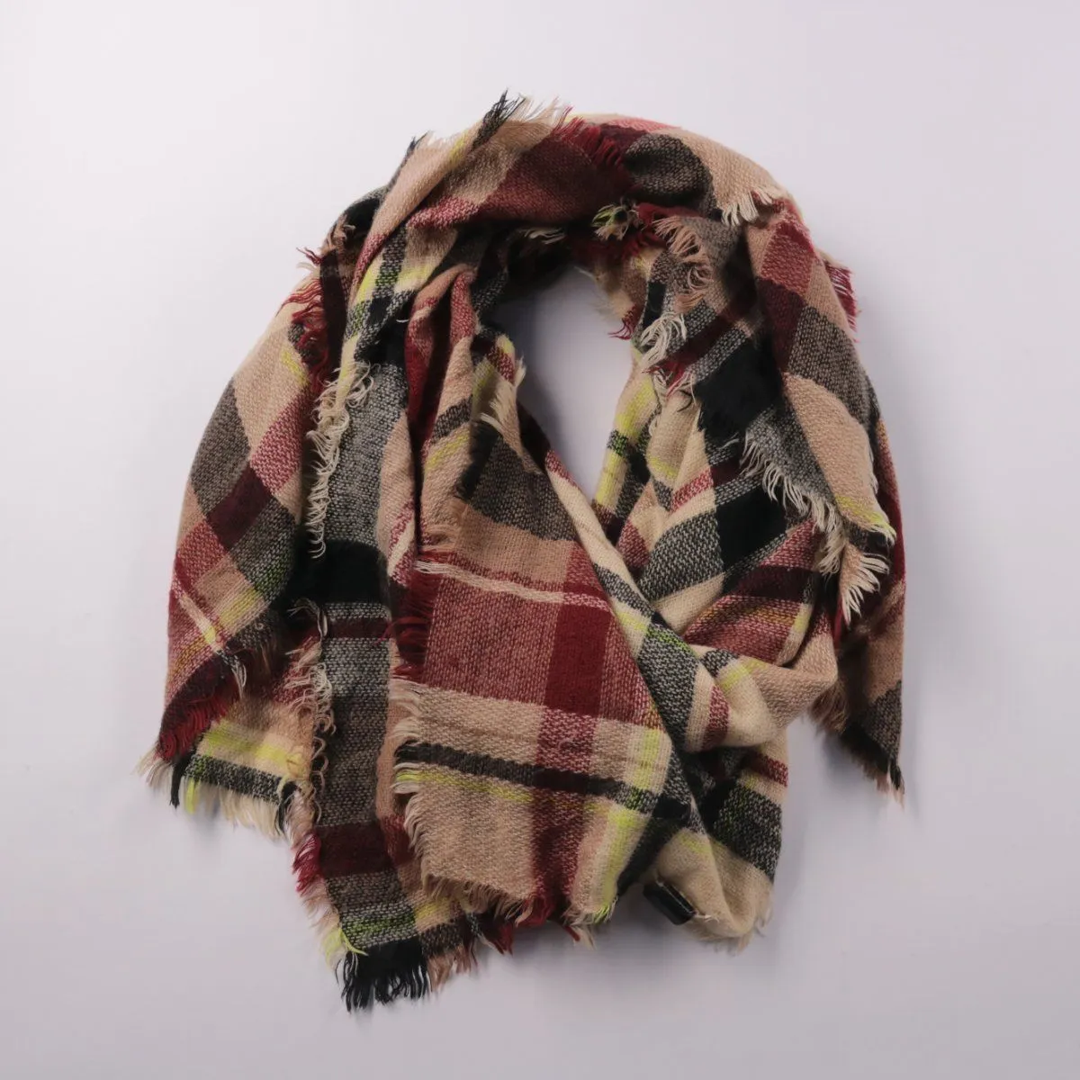 Шарф Pieces в клетку с необработанными краями и бахромой. Подойдёт для повседневных образов в демисезон и прохладные дни, можно носить как шарф или накидывать на плечи. Лёгкий и объёмный, удобно драпируется и не занимает много места в сумке.