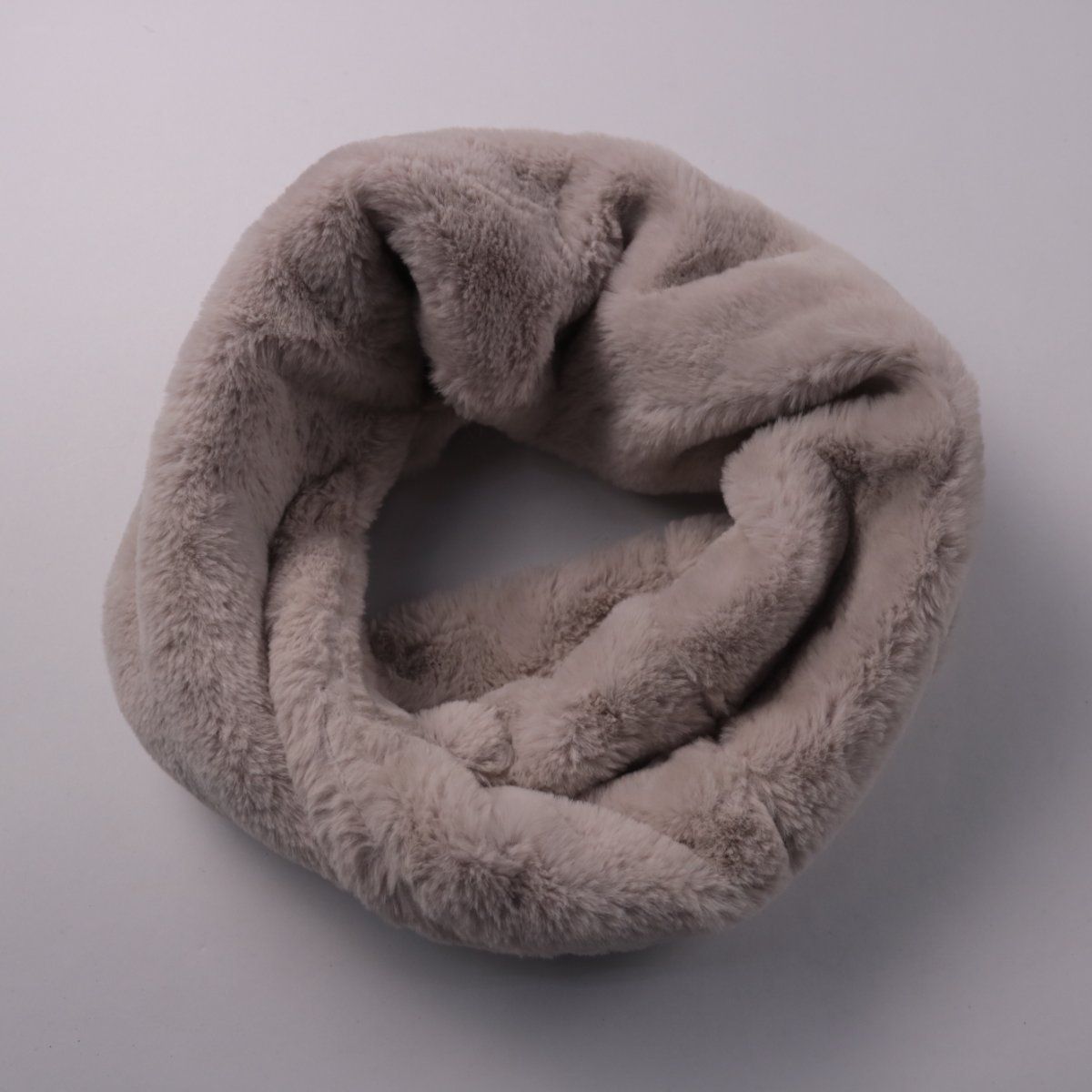 Мягкий меховой снуд без бренда в сером цвете. Подойдёт для зимних прогулок и поездок, хорошо закрывает шею от ветра и холода. Удобно надевать без завязывания и можно носить с пуховиком или пальто.
