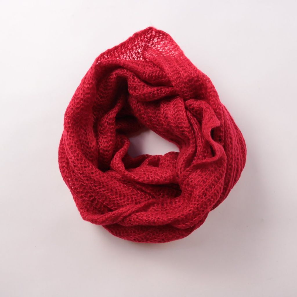Вязаный шарф-снуд Pieces ярко-красного цвета, мягкая крупная вязка. Подойдёт для зимних прогулок и прохладной погоды в городе, хорошо сочетается с пальто и пуховиком. Удобен тем, что это труба без свободных концов — быстро надевается и держит форму.