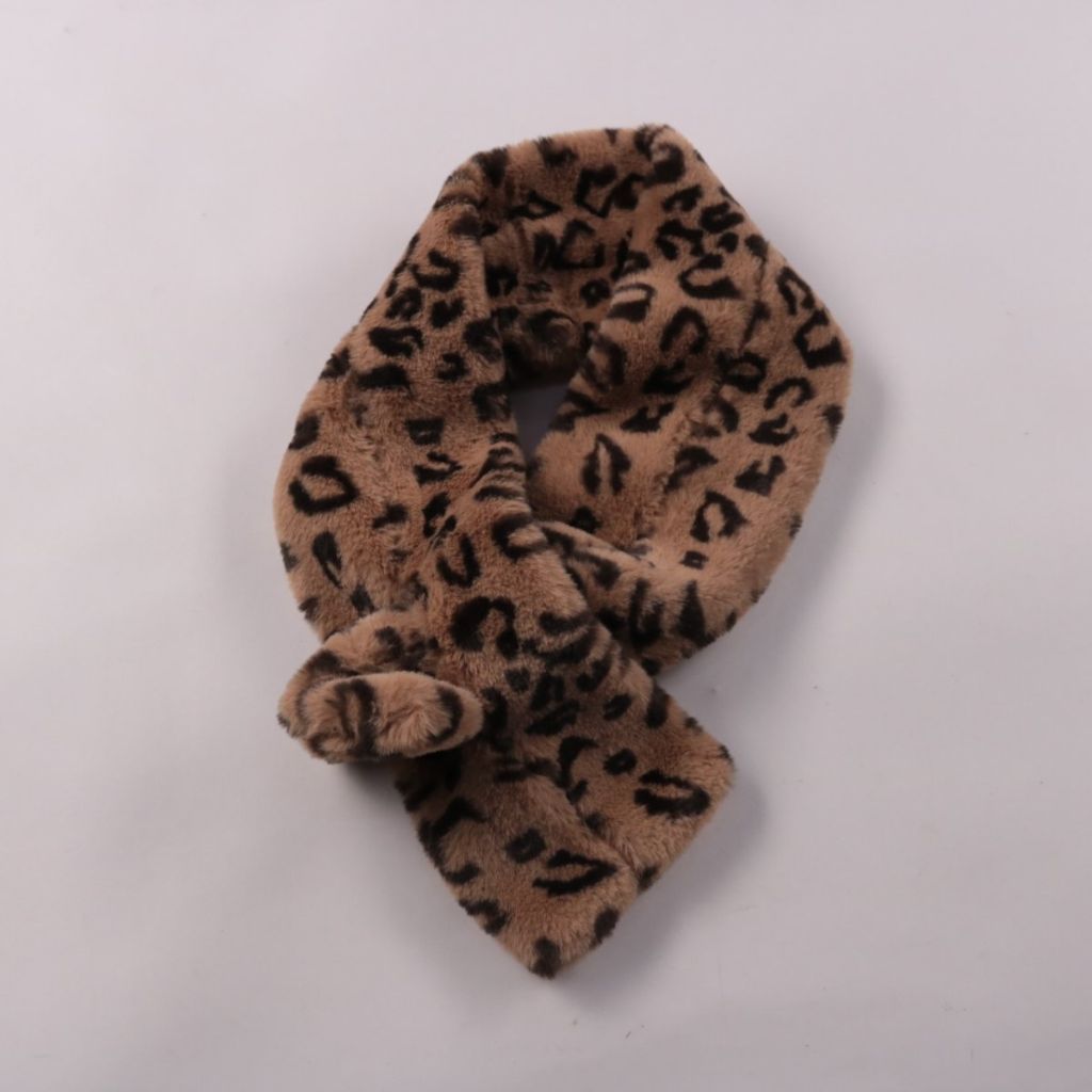 Мягкий шарф из искусственного меха с леопардовым принтом в бежево-коричневых тонах. Подойдёт для зимних прогулок и повседневных образов, удобно фиксируется и хорошо сохраняет тепло.