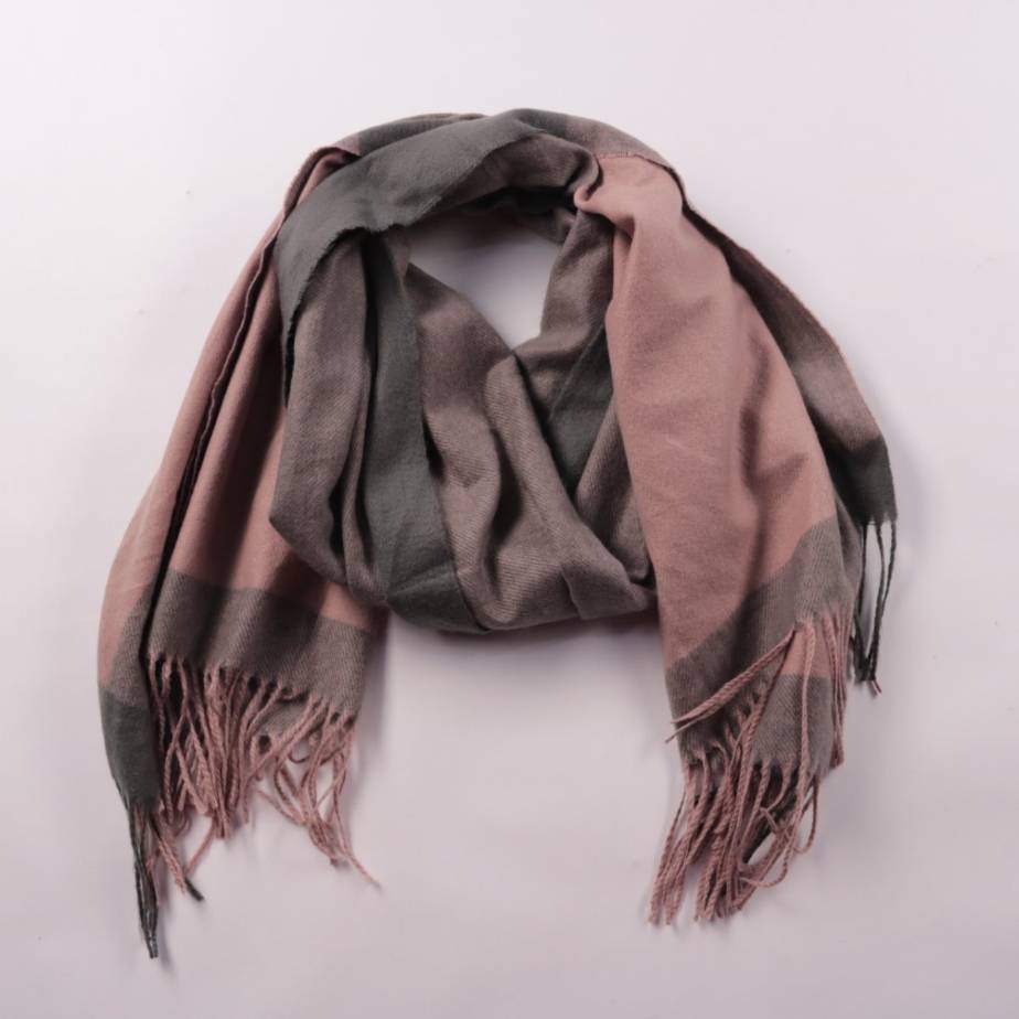 Шарф в серо-розовую клетку с бахромой, мягкий и приятный к коже. Подойдёт для прохладной погоды и многослойных образов, легко сочетается с пальто или курткой. За счёт добавления шерсти лучше сохраняет тепло.