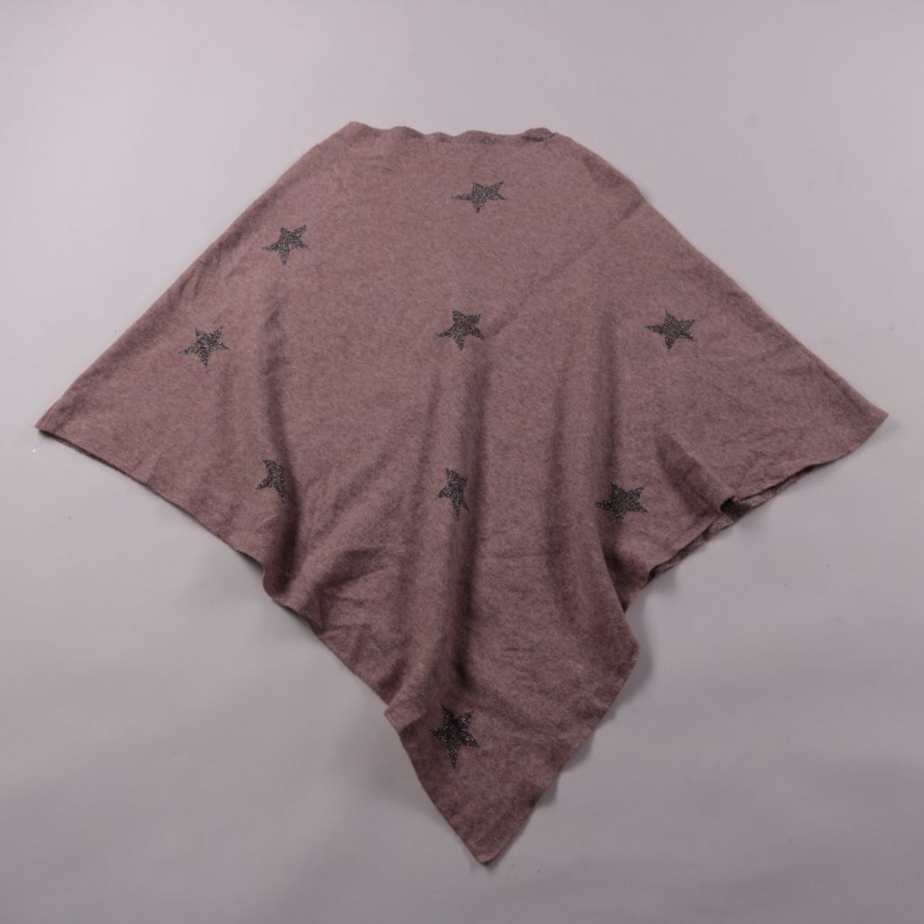Платок без указанного бренда в пыльно-розовом цвете со звёздами и лёгким блеском. Подойдёт для повседневных образов и как акцент к пальто, куртке или свитеру. Удобен тем, что его можно носить на шее, накинуть на плечи или завязать на сумку.