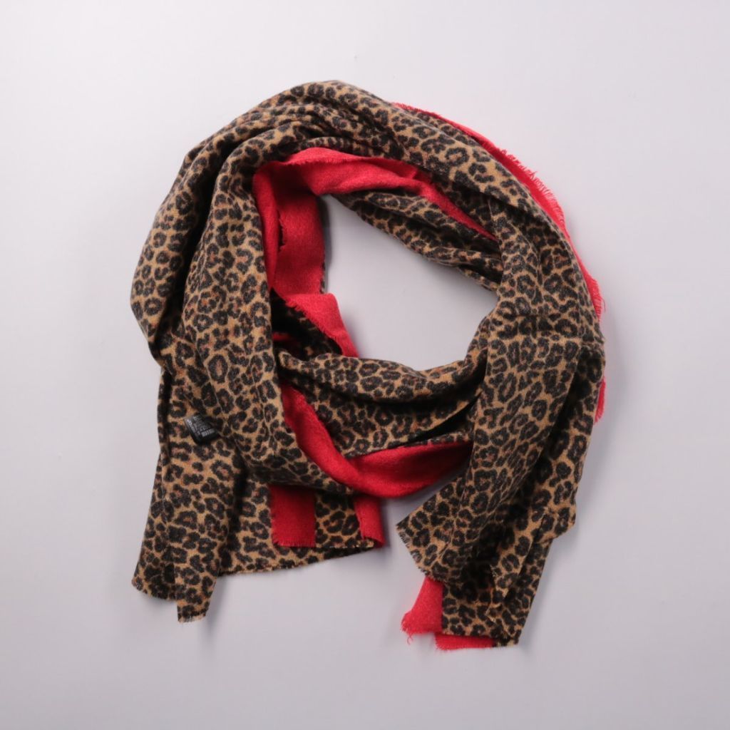 Шарф-палантин Zara с леопардовым принтом и красной окантовкой. Подойдёт для повседневных образов в прохладную погоду и как яркий акцент к однотонной верхней одежде. Акриловая ткань лёгкая и быстро сохнет.