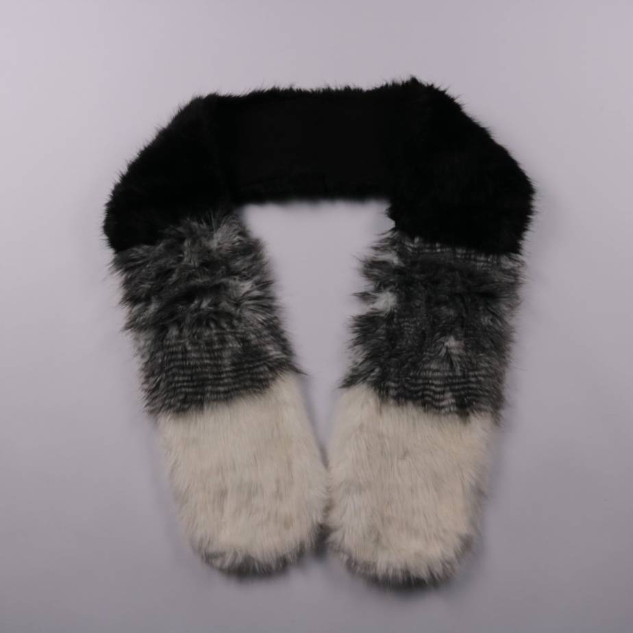 Меховой шарф без бренда, выполнен в сочетании чёрного, серого и белого цветов. Подойдёт для зимних прогулок и повседневных образов, хорошо смотрится поверх пальто или куртки. Мягкий и тёплый, помогает закрыть шею от ветра.