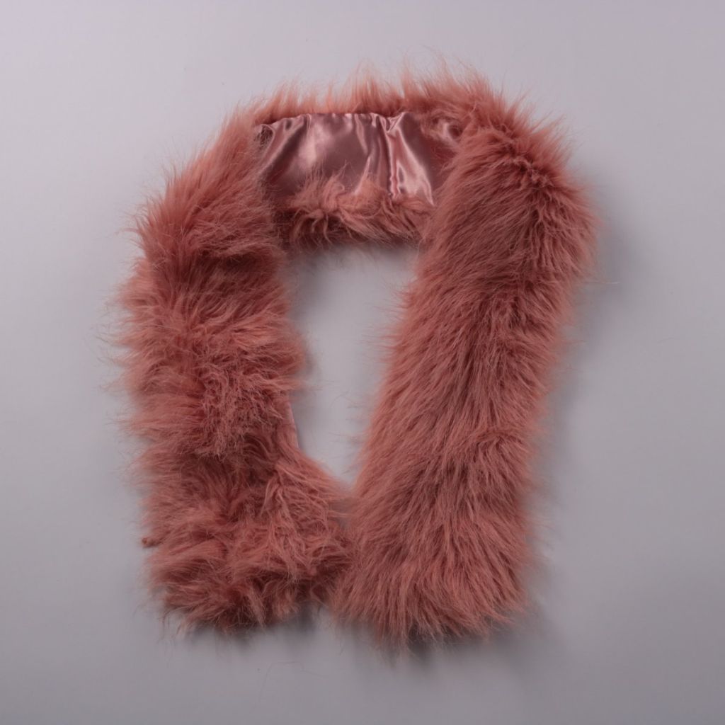 Меховой шарф-воротник розового цвета, без указания бренда. Подойдёт для зимних и холодных демисезонных образов, хорошо согревает шею и мягко прилегает благодаря пушистому ворсу.