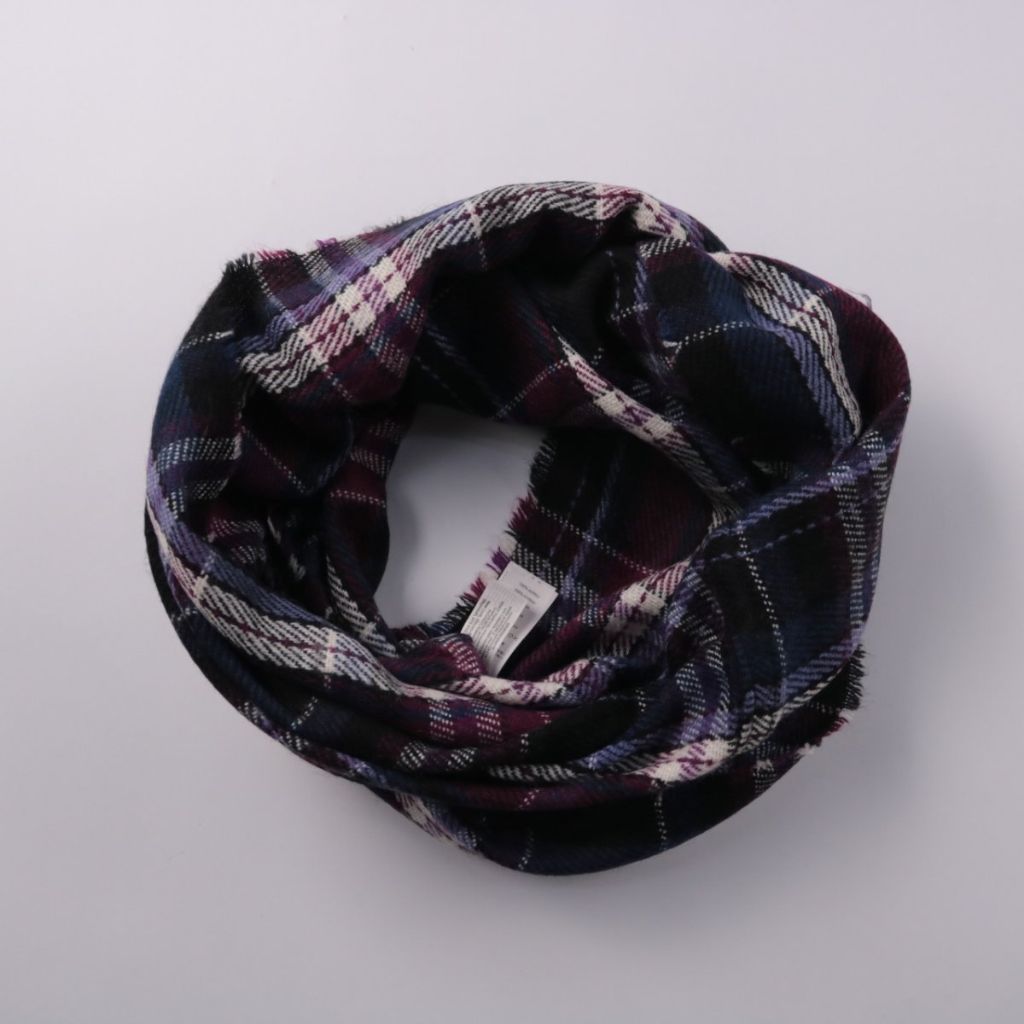 Шарф-снуд New Look в клетку (тартан) в темных тонах с бордовыми и белыми линиями. Подойдет для повседневных образов в холодное время года, удобно носить поверх пальто или куртки. Акриловая пряжа легкая и быстро сохнет после стирки.