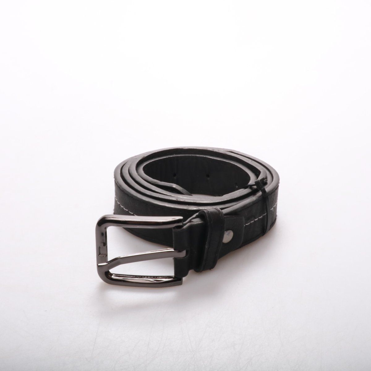 Черный ремень с металлической пряжкой, подойдет к джинсам и брюкам на каждый день. Лаконичный дизайн легко сочетается с базовым гардеробом. Прочный материал держит форму и надежно фиксируется.